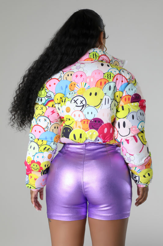Sold out‘MAKE YOU SMILE’ luxe puffer jacket
